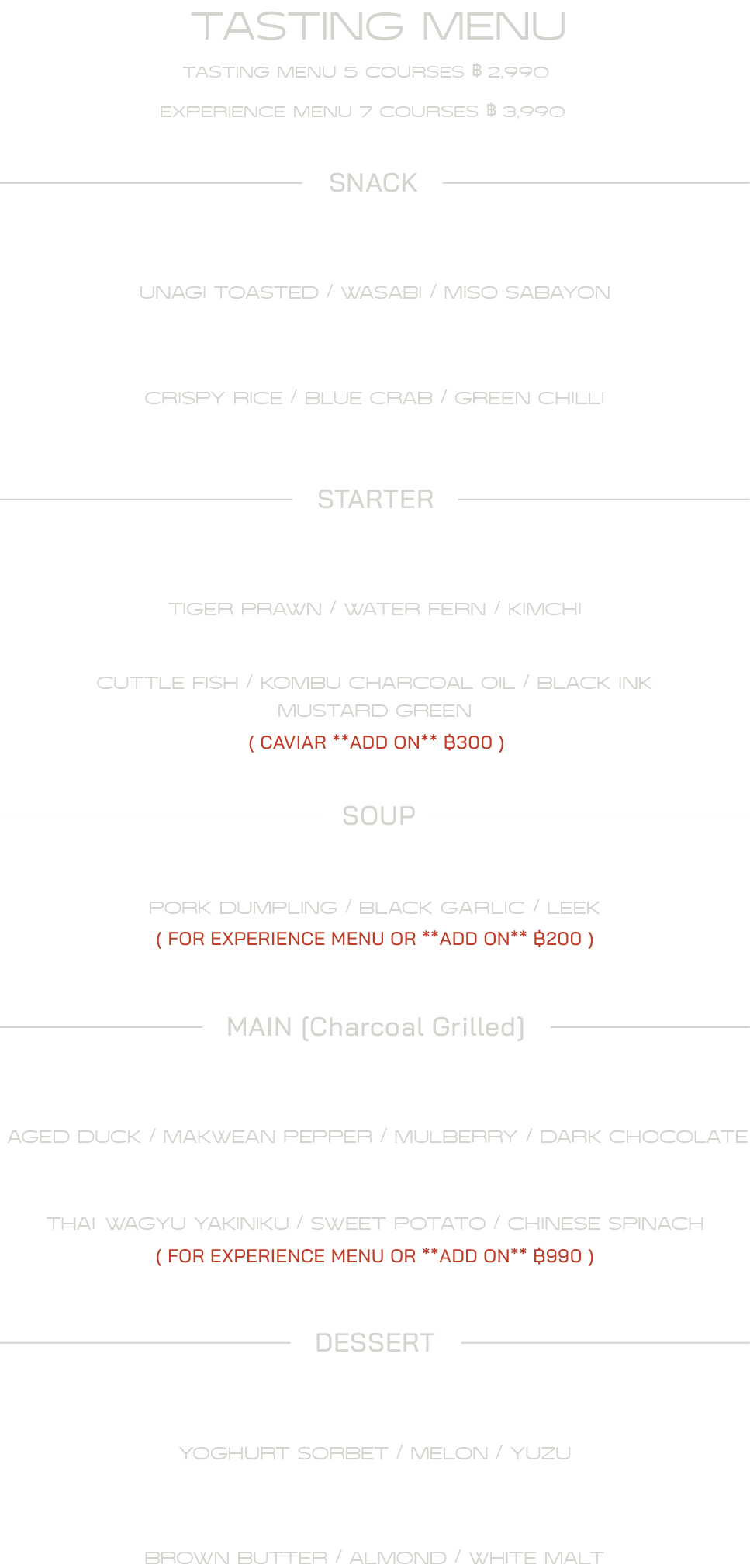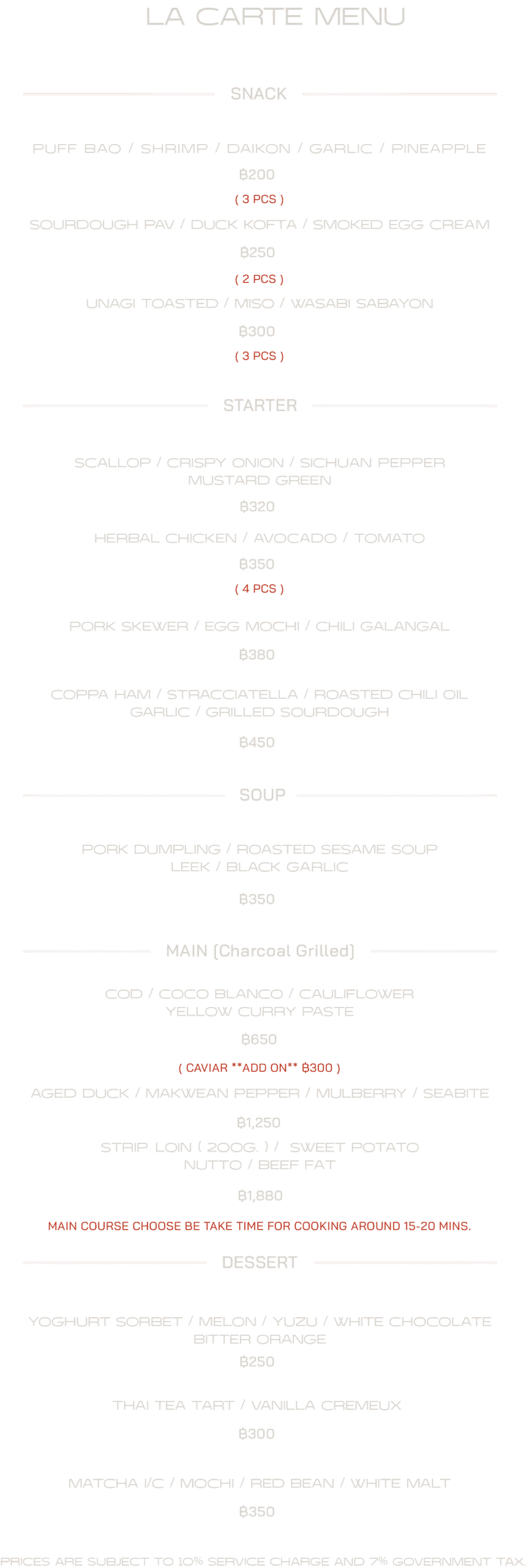 We provide two menu options; a la carte & tasting menu current.